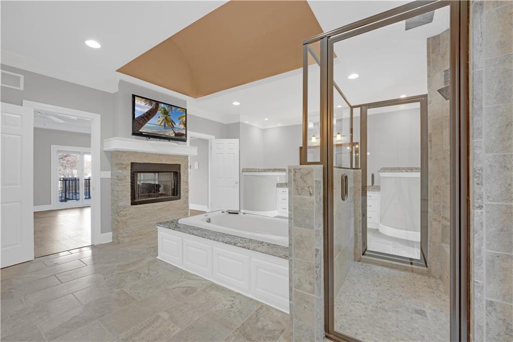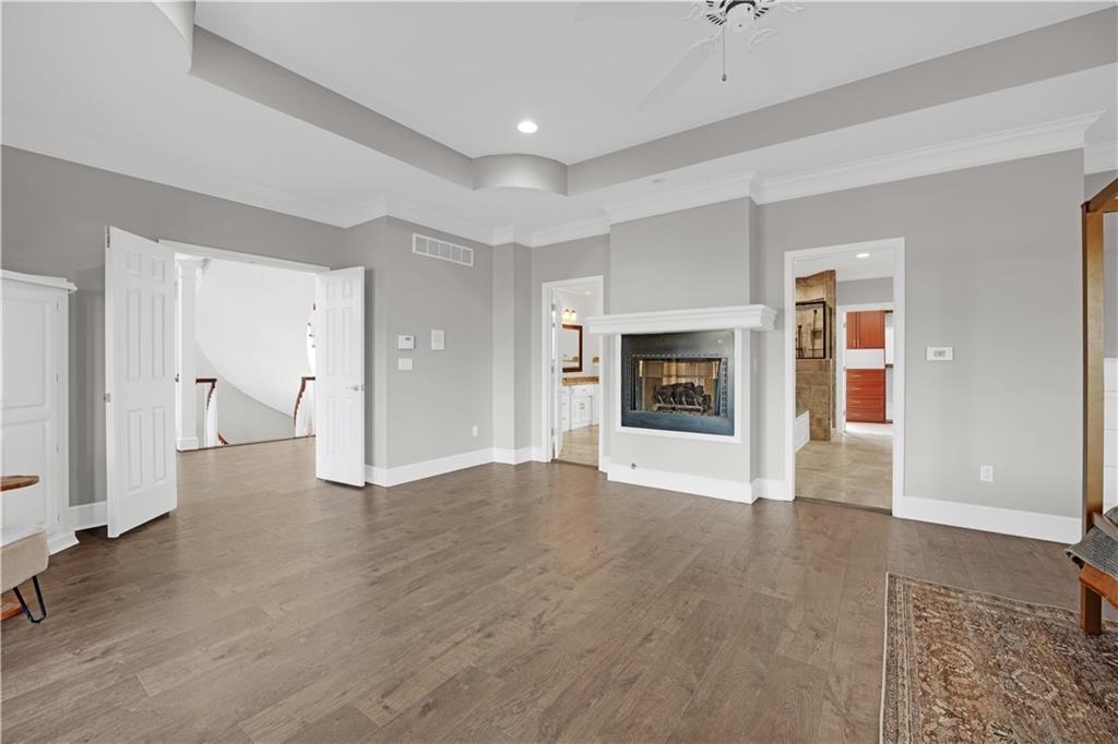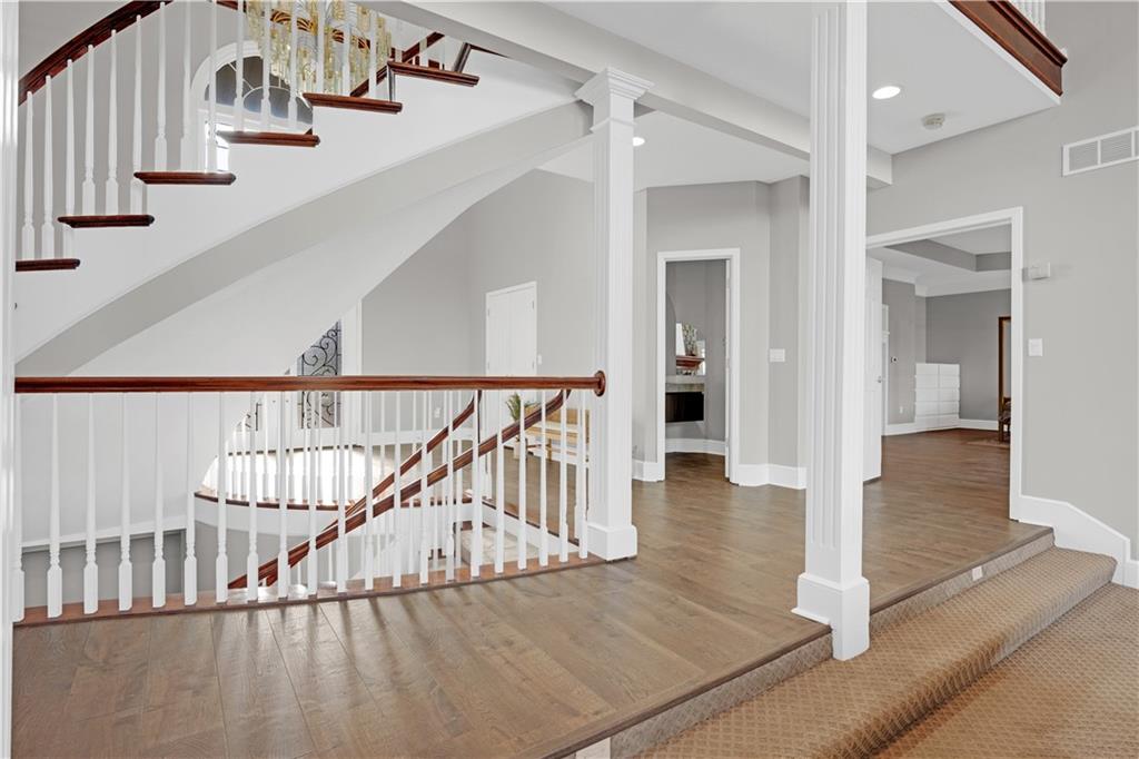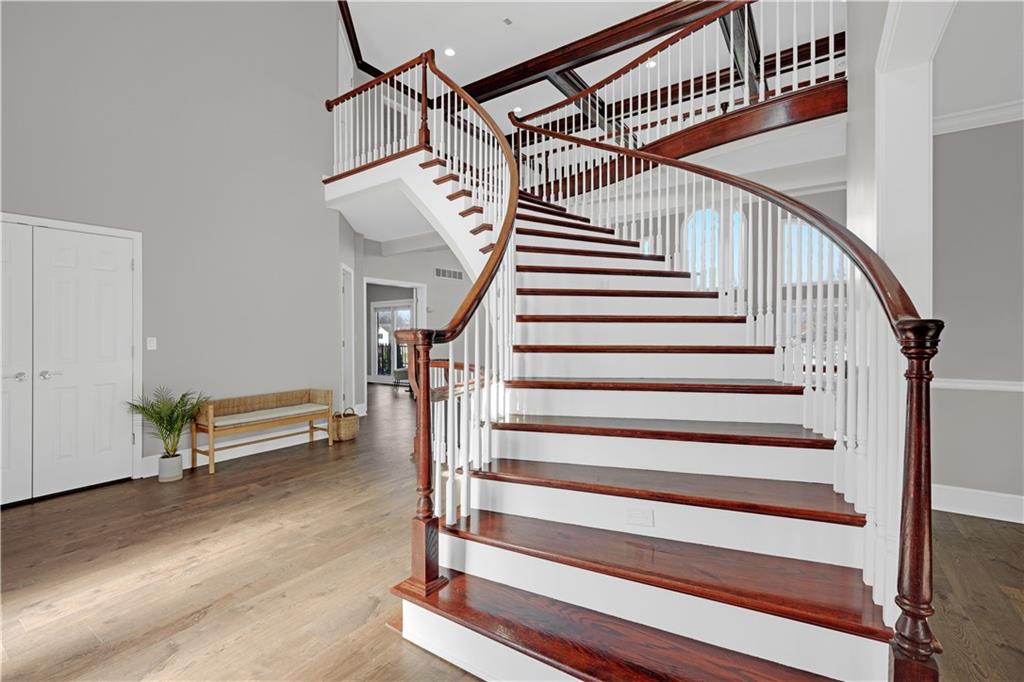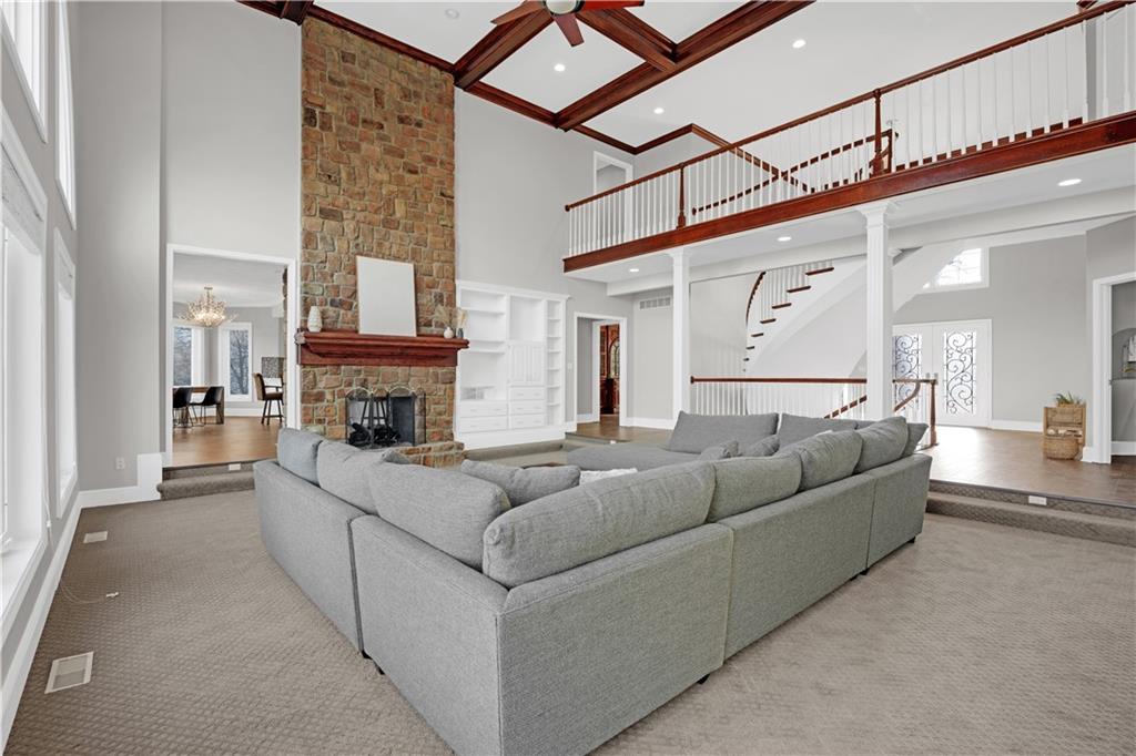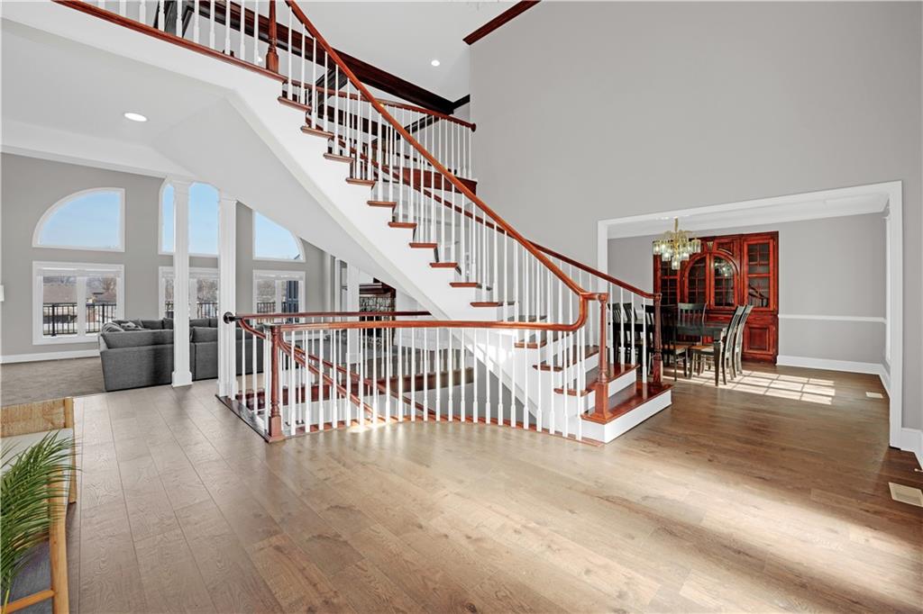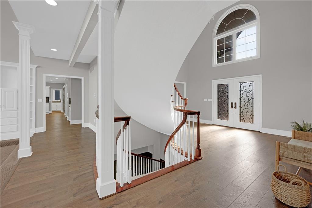 NEW AND IMPROVED !!!!!!! This remarkably well-maintained and renovated home definitely can be coined a palace! Step into the 7000+ square foot home and immediately get blown away by the sky high ceilings, intricate cherry wood detail, and grand curved staircases. The formality of this home is not overwhelming but rather overflowing with possibilities for creative spaces and entertaining. I'm going to run out of characters for descriptives so here I shall sum up to my best ability: The main floor bedroom has an updated regal bathroom fit for a king and/or queen! Featuring custom closet cabinetry, a walk-in shower, jacuzzi tub, two vanities, toilet room, tv, and dual sided fireplace. The kitchen has been remodeled with new cabinets and beautiful granite countertops and upscale Thermador appliances- a mud room / laundry room adjacent which also steps outside to a deck. Upstairs houses three large bedrooms with closets and two bathrooms, with two staircases for accessibility. The home has a custom safe, cedar sauna, cedar closet, computer / tech room, basement "garage" for utilities and storing yard things. The lawn is irrigated. There are all new Pella windows, an added covered / screened-in porch, composite deck that spans nearly the entire back of the home.